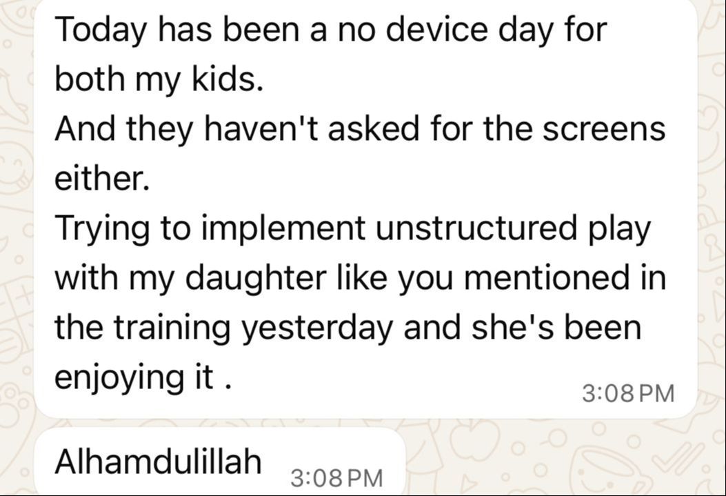 Trying to implement unstructured play with my daughter like u mentioned in the training yesterday and she's been enjoying it. Alhamdulillah!